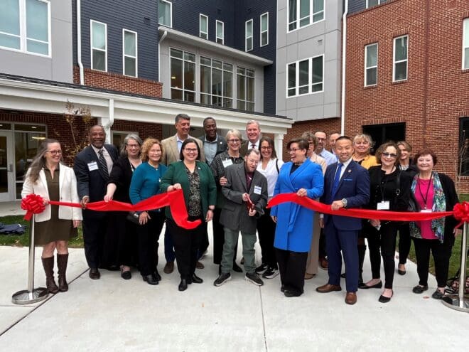 Developed by 501(c)(3) nonprofit developer Mission First Housing Group and based on an intergenerational housing concept created by the nonprofit Autism Society of Maryland, Patuxent Commons will bridge connections across generations and abilities, creating an inclusive community where residents with disabilities can live as independently as possible. Nineteen of Patuxent Commons’ 76 units are being rented to low-income residents with disabilities, while the remaining units are rented to older adults (30 units) and individuals and families (27 units).